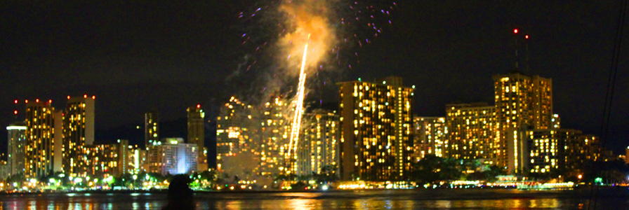 - Take your evening to an enchanting new level on our fireworks dinner cruise! Nothing compares to the open-air setting of sailing along the coast in the without the typical dining room setting. With the rugged Ko’olau Mountains towering above the shimmering Honolulu skyline and the iconic Waikiki scene of towering hotels in front of Diamond Head, the beauty of your surroundings aboard the Catamaran is matched only by the breathtaking splendor of watching the sun set behind the tropical horizon!
